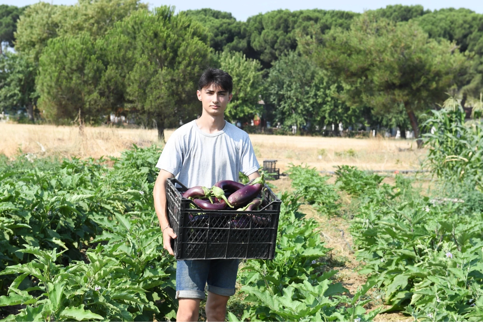 Herhangi bir tarım ilacı kullanmadan 10 dönümlük bir alana dikim yaptıklarını ifade eden Gazi Tarım A.Ş. Genel Müdürü Arca Atay, “Gazi Tarım A.Ş. olarak Mart ayında Hamitlerdeki seralarımızda ekmiş olduğumuz 130 çeşit yerel ve yerelleşmiş tohumdan çıkan fideleri Mayıs ayında yaptığımız protokol çerçevesinde Hamidiye Mesleki ve Teknik Anadolu Lisesi’nde 10 dönümlük bir alana dikimini yaptık. Ektiğimiz sebzelerden ilk hasadı patlıcan ve biberlerden gerçekleştirdik. Bizim burada bu sebzeleri dikme amacımız burada tohum elde etmek, buradan yetişen sebzelerden elde ettiğimiz tohumları önümüzdeki Mart ayında halkımızla buluşturmayı planlıyoruz. Ücretsiz bir tohum takas şenliği gerçekleştireceğiz. Burada ki ürünlerden tohum elde ediyoruz. 10 dönümlük bir alanda üretim yapıyoruz. Burada ürettiğimiz fazla ürünlerin ekolojik tarım koşullarında üretilmiş gıdalar olarak Kent Lokantası’nda kullanılmasının çok uygun olacağını düşündük. OKİ (Osmangazi Kültür İşleri) ile yapmış olduğumuz anlaşma gereği bugün burada hasat ettiğimiz ürünleri Kent Lokantası’nın yemek hanesine teslim ettik. Bu ürünler yemekhanede sağlıklı yemeklere dönüştürülecek. Ekimini yaptığımız 10 dönümlük alanda 25 çeşit domates, 40 çeşit biber, 10 çeşit mısır, 15 çeşit fasulye, kavun, karpuz ve kabaklarımız var burada yiyecek olarak tahıllar hariç her türlü sebze ve baklagili bulabilmek mümkün, burada çeşitli ülkelerden gelen yerli tohumlarla yetiştirilen sebze ve baklagiller de var, burada ürettiğimiz her şey ekolojik tarım koşullarında her hangi bir tarım ilacı kullanmadan üretilmiştir. Biz burada tarım ilacı kullanmadan da üretim yapılabilir bunu göstermeye çalışıyoruz” dedi.