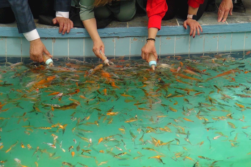 Koi balıkları hakkında bilgi veren Gaziantep Hayvanat Bahçesi Müdürü Celal Özsöyler,  "Bu yıl Koi balıklarının olduğu yeni bir açılış yaptık. Beş yüz tonluk bir havuzda Japonya ve Çin'den gelmiş olan Koi balıklarını burada biberonla besliyoruz. Yaklaşık yirmi yedi bin Koi balığı var bu havuzda. Koi balıklarını özel biberonlarla besleyerek büyüteceğiz. Balıklar büyüdüğü zaman diğer alanlara alacağız. Yaklaşık olarak altı ayda büyüyerek ayrışıyor bu balıklar. Altı aydan sonrada kendileri yumurtalamaya başlarlar. Ana vatanları Çin ve Japonya olan rengarenk bu balılar akıntının tersine yüzer. Biberonla beslendikleri için daha çabuk büyüyorlar. Biberona alıştırdık." dedi. (İLKHA)