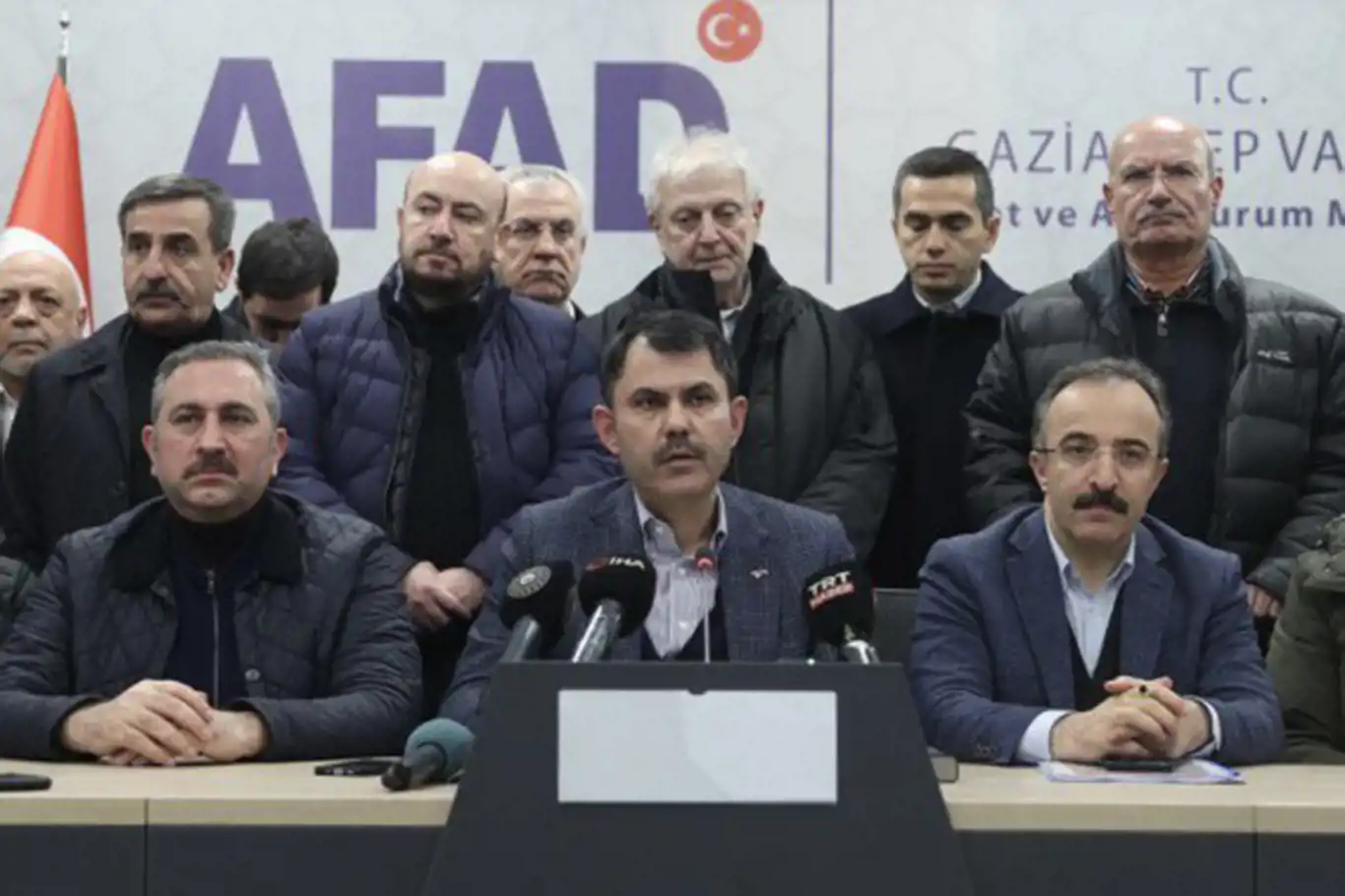 Çevre, Şehircilik ve İklim Değişikliği Bakanı Murat Kurum, deprem felaketinin yaşandığı 10 ilden birisi olan Gaziantep merkez, ilçeleri ile birlikte belde ve köylerindeki incelemelerini sürdürürken AFAD Koordinasyon Merkezinde yaptığı toplantının ardından açıklamada bulundu.