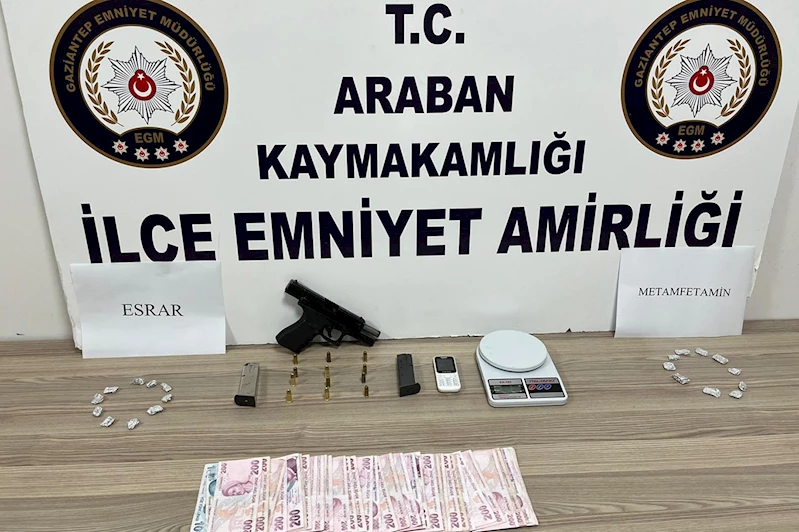 Gaziantep İl Emniyet Müdürlüğü tarafından yapılan açıklamada, "Araban İlçe Emniyet Amirliği ekiplerimizce yapılan çalışmalarda; 1 adet ruhsatsız tabanca,12 adet fişek,