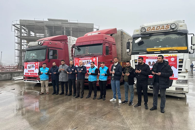 Gaziantep hayırseverleri tarafından hazırlanan 2 bin koli ve toplam 60 tondan oluşan 3 tır gıda dualarla Suriye'ye uğurlandı.