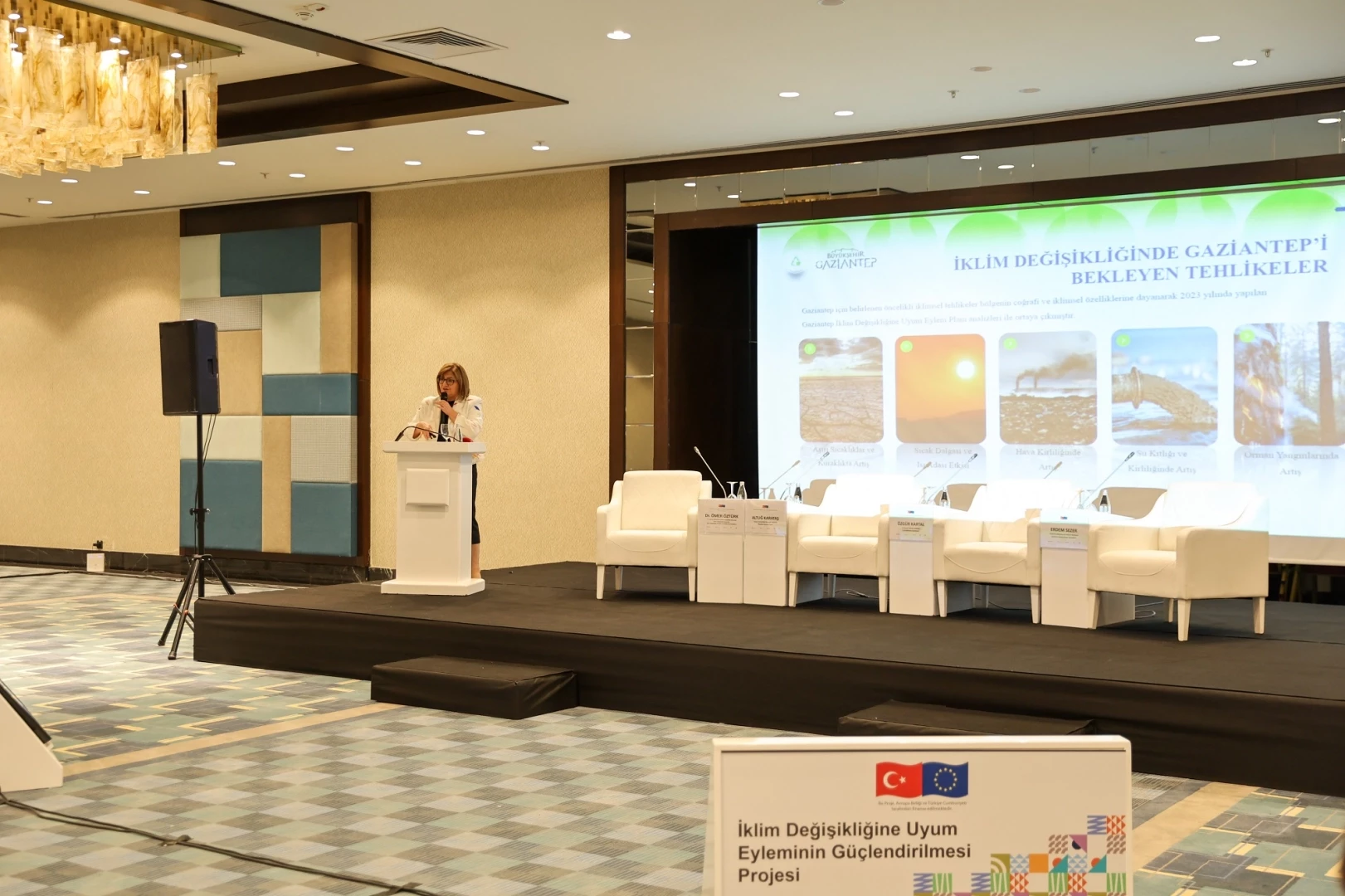 Gaziantep Büyükşehir Belediye Başkanı Fatma Şahin, Çevre, Şehircilik ve İklim Değişikliği Bakanlığı tarafından yürütülen “Türkiye'de İklim Değişikliğine Uyum Eyleminin Güçlendirilmesi Projesi" kapsamında katıldığı altıncı farkındalık artırma konferansında Büyükşehir Belediyesi’nin çevre projelerini anlattı.