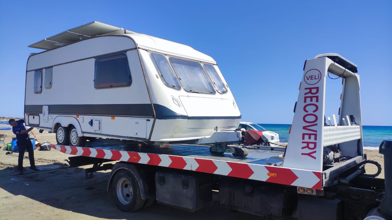 GAZİMAĞUSA BELEDİYESİ SİLVER BEACH PLAJI’NDAKİ KARAVANLARA MÜDAHALE ETTİ