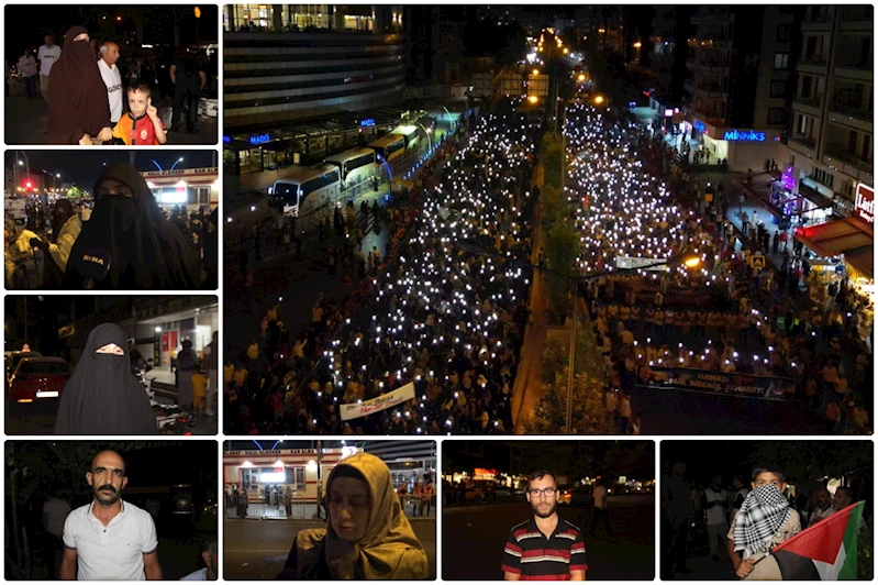 Düzenlenen yürüyüşe katılan Hüseyin Bilal Aktu, HAMAS’ın çağrısıyla toplandıklarını belirterek "Gazze’de kardeşlerimiz bombalar altındayken biz burada elimiz kolumuz bağlı, hiçbir şey yapamıyoruz. Yardımların bir kısmı ulaşıyor ama o da yetersiz. HAMAS’ın çağrısıyla bu alana geldik. Burada kardeşlerimizin sesine ses olmaya ve sesimizi yükseltmeye geldik. Belki bu, Gazze’deki kardeşlerimize bir umut olur. Gazze harabeye dönmüş durumda ve kimse müdahale etmiyor. Buradan Cumhurbaşkanına sesleniyorum: Lütfen, Gazze’deki kardeşlerimiz ölüyor, siz neyi bekliyorsunuz?" ifadelerini kullandı.