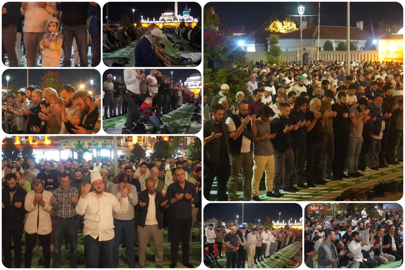 Yatsı namazının ardından toplanan cemaat, Filistin başta olmak üzere tüm mazlum coğrafyalar için ellerini semaya açtı.