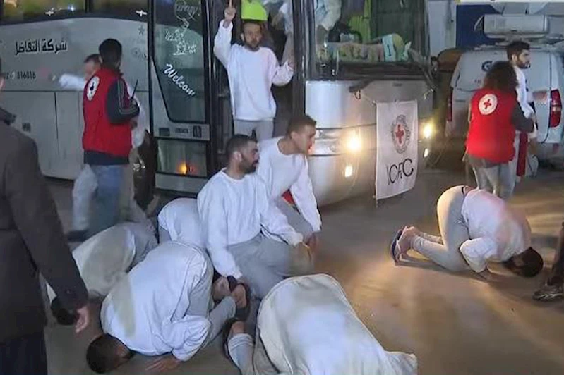 İşgal altındaki Batı Şeria'daki Ofer Askeri Cezaevi ile işgal altındaki toprakların güneyinde bulunan Ketziot Hapishanesi’nden tahliye edilen Filistinli esirler, Uluslararası Kızılhaç Komitesi ekiplerine teslim edildi.