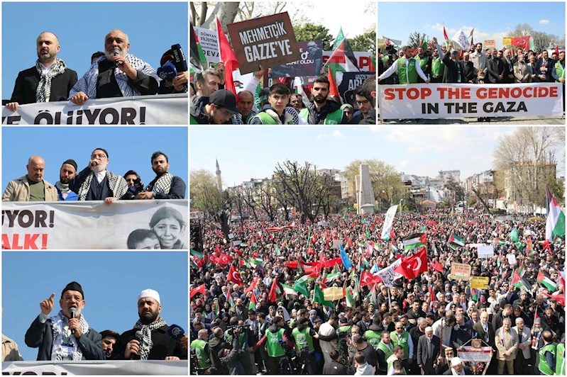 İHH İnsani Yardım Vakfı'nın çağrısı ve onlarca STK'nın desteği ile gerçekleştirilen yürüyüş için on binler öğle namazında Beyazıt Meydanı'nda bir araya geldi.