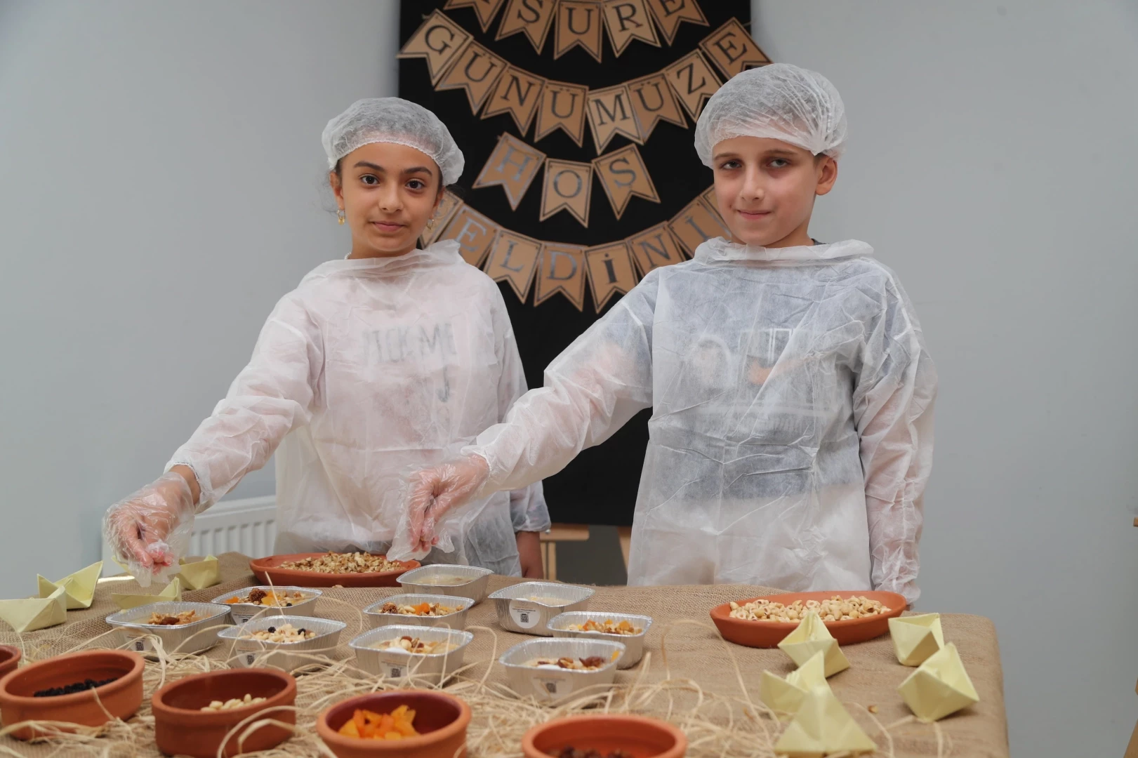 “Birlikte pişirdik, birlikte paylaştık” sloganıyla gerçekleştirilen etkinlikte, öğrenciler geleneksel aşureyi hazırlayıp önce arkadaşlarına ardından çevredeki esnafa ikram etti.