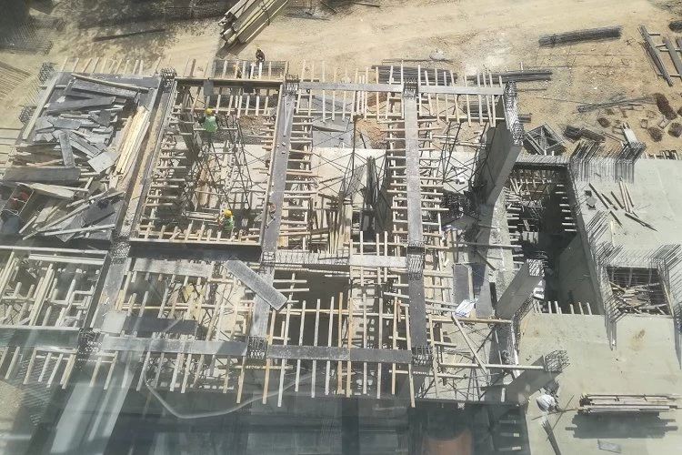 Yapı Kontrol Dairesi Başkanlığı’nın idaresinde hummalı bir çalışma yürüten yüklenici firma, yapının tüm bloklarında eş zamanlı olarak çalışıyor. Bu bağlamda ekipler, A blokta demir imalatına, zemin katta ise döşeme kalıp imalatına devam ediyor. B blokta betonarme imalatının tamamlandığı projede C bloğun zemin kat ve 1. kat döşeme betonu, D blok kısmında ise zemin döşeme betonu ile 1. kat döşeme betonu döküldü. D bloğun 2. kat döşeme kalıbı çakan ekipler aynı katta demir imalatına devam ediyor. F blokta ise zemin betonu, 1. katta ise döşeme betonu atıldı. 2. katta da döşeme kalıp imalatı devam ediyor. E, H ve F blokta ise betonarme imalatı önümüzdeki günlerde başlayacak.