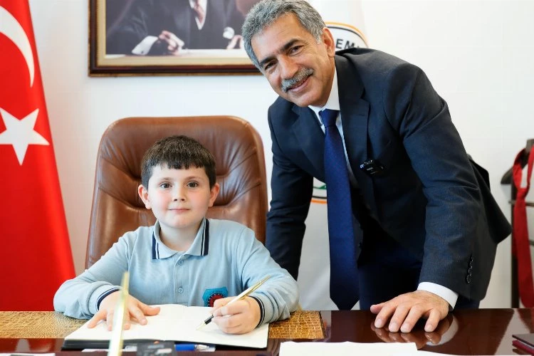 BURSA (İGFA) - Gemlik Belediye Başkanı Şükrü Deviren, Başkanlık makamını Mehmet Akif Ersoy İlkokulu öğrencileri Zeynep Girgin ve Eymen Özdemir’e devretti. Başkan Şükrü Deviren’den bir müjdede çocuklara geldi.