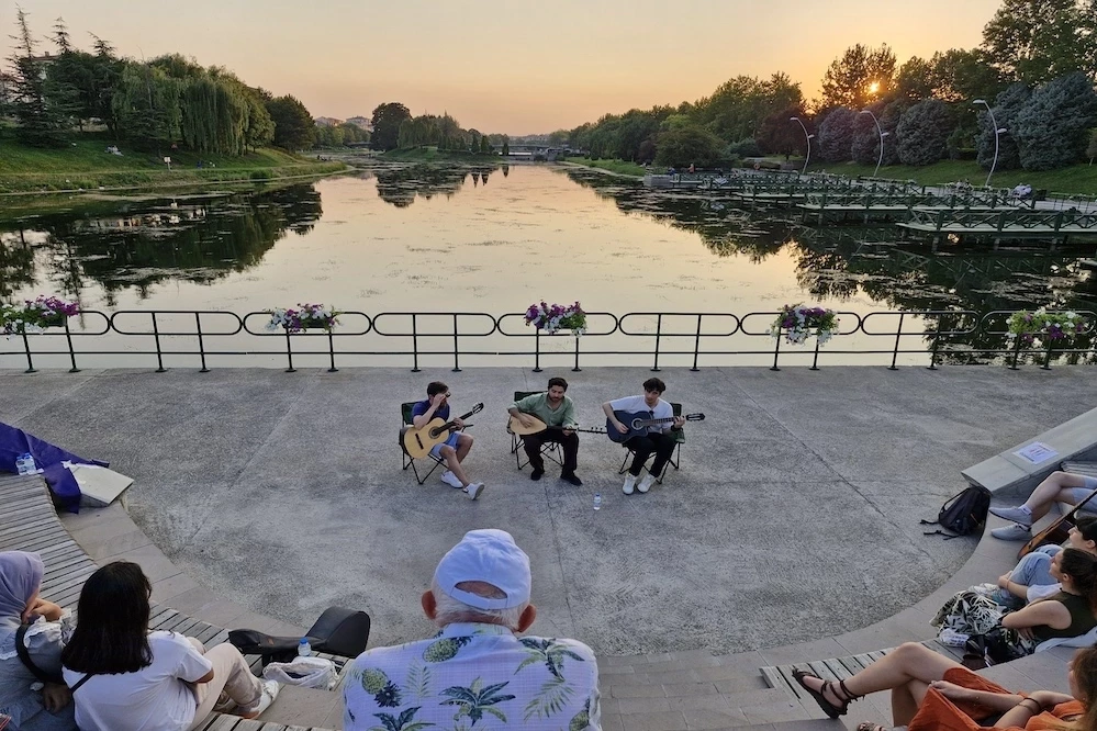 Eşsiz manzara eşliğinde şehirdeki müzik tutkunlarını bir araya getiren buluşmada gençler, birbirinden güzel şarkıları seslendirdiler.
