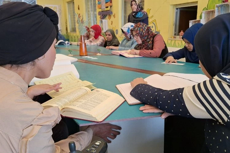 Şanlıurfa İl Müftülüğü Kuran Kursu Öğreticisi Zeynep Akbaş, tarafından Braille Alfabesi ile verilen kurslarda Engelli bireyler gönül gözü ile Kuran-ı Kerim-i öğreniyor.
