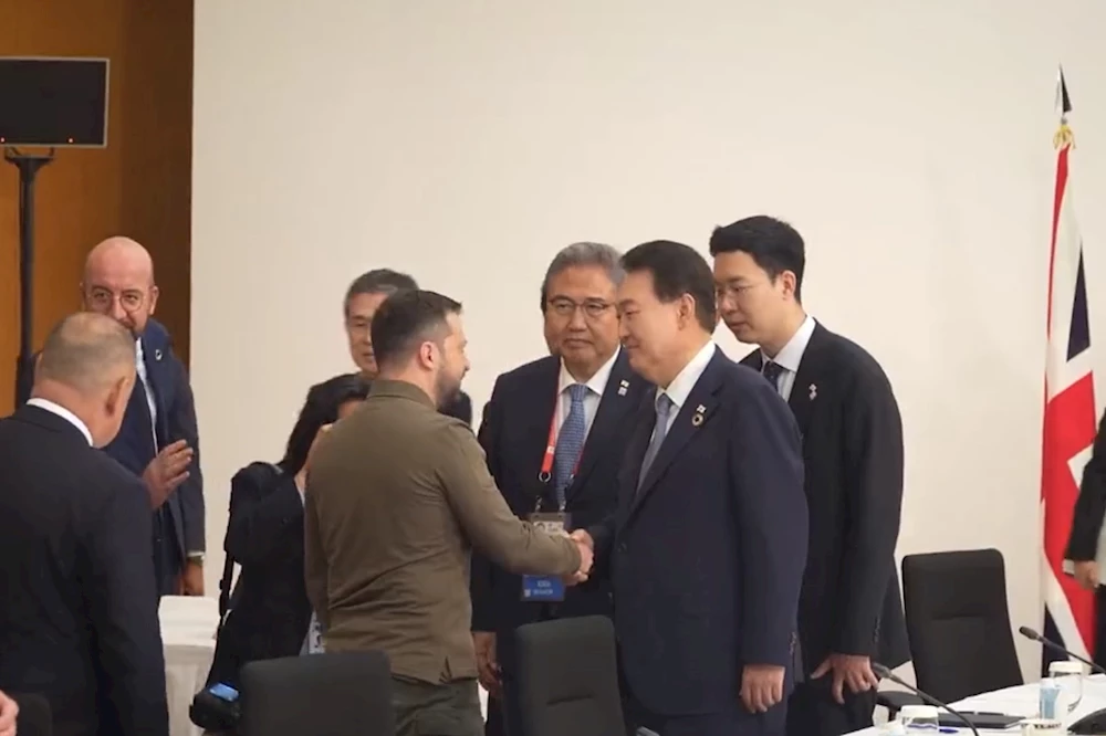 Güney Kore Devlet Başkanı Yoon Seok-yeol, Ukraynalı mevkidaşı Volodimir Zelenski ile ilk kez Hiroşima'daki bir araya geldi.