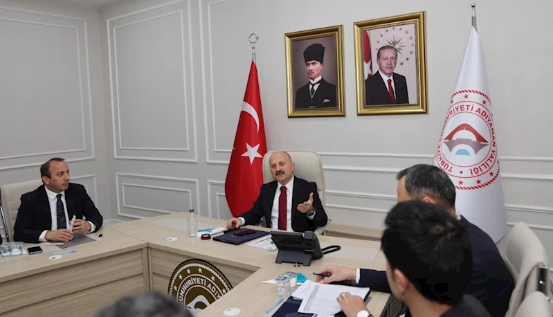 Çevre, Şehircilik ve İklim Değişikliği ile AFAD İl Müdürünün de katıldığı toplantıda, Adıyaman ve köylerinde kalıcı deprem konutlarının hak sahipleri, konut teslim süreçleri, alt yapı çalışmaları ile sahadaki son durum ele alındı.