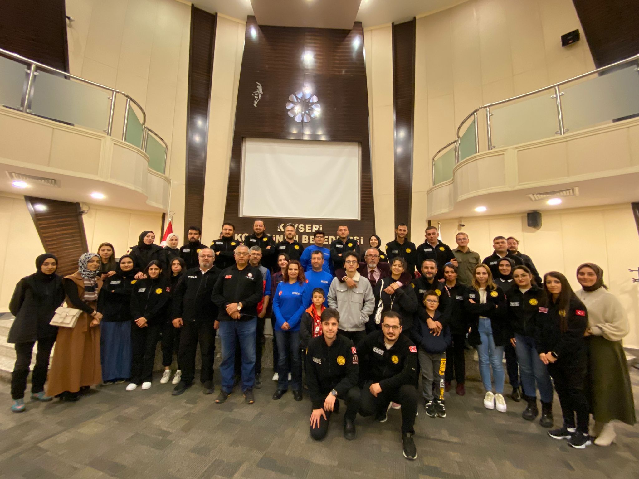 Eğitim Derneği Başkanı Yavuz Altıntop, AFAD Kayseri Müdahale Şube Müdürü Hasan Say ve Yesevi Kayseri Arama –