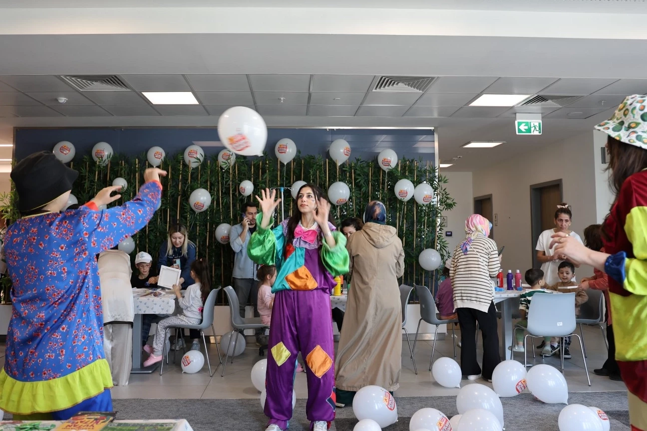 Çocuklar, etkinlik alanında bir araya geldikleri palyaçolarla dans ederek keyifli anlar yaşadı. Danslarla, kahkahalarla dolu olan etkinlik, miniklere bayramın neşesini doyasıya yaşattı. Çocuklar, boyama etkinliklerinin ardından pamuk şekerle neşeyle dolu anlar yaşarken, hediye edilen hikâye kitapları, yapbozlar ve balonlarla bayram coşkularını pekiştirdi.