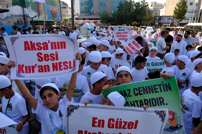 Eğitimlerini tamamlayan çocuklar, Beşyol Meydanı’nda toplanarak takke ve seccadelerle Kent Meydanı’na kadar yürüdü. Burada cemaatle namaz kılan çocuklar dua etti. 15 günlük eğitim programına katılarak faydalı ve güzel bilgiler öğrendiklerini belirten çocuklar, soykırıma maruz bırakılan Gazzeli akranlarını da unutmadı.