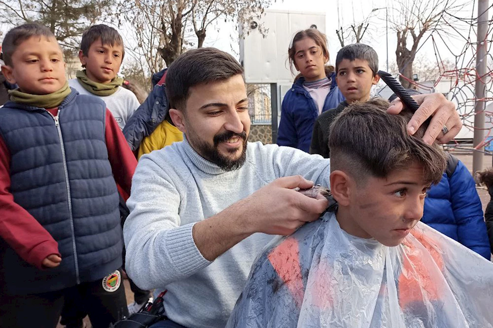 Hayırsever berber depremzede çocukları ücretsiz tıraş etti