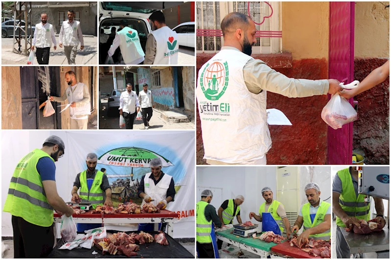 Kurban Bayramının 2'nci gününde kurbanlıkları kestikten sonra dinlenmeye bırakan yardım kuruluşları Umut Kervanı, Yetimler Vakfı, Avrupa Yetim Eli ve IHO EBRAR, bugün sabahın ilk ışıklarıyla beraber parçalama ve ardından muhtaç ailelere dağıtım faaliyetine başladı.
