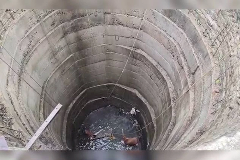 Ülke medyasına göre bir inek, 70 metre derinliğindeki bir kuyuya düştü.