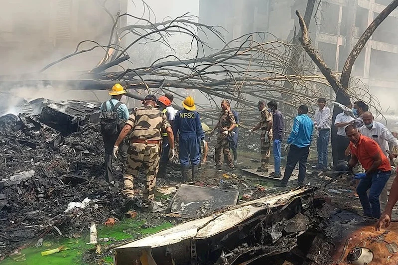 Ahmedabad'da uçağın düştüğü Meghani Nagar yerleşim yeri ve bölgede enkaz kaldırma çalışmaları sürüyor.