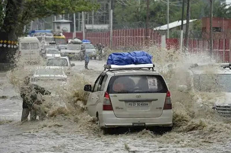 Hindistan'ın Cammu Keşmir bölgesinde sağanak yağış etkili oldu.