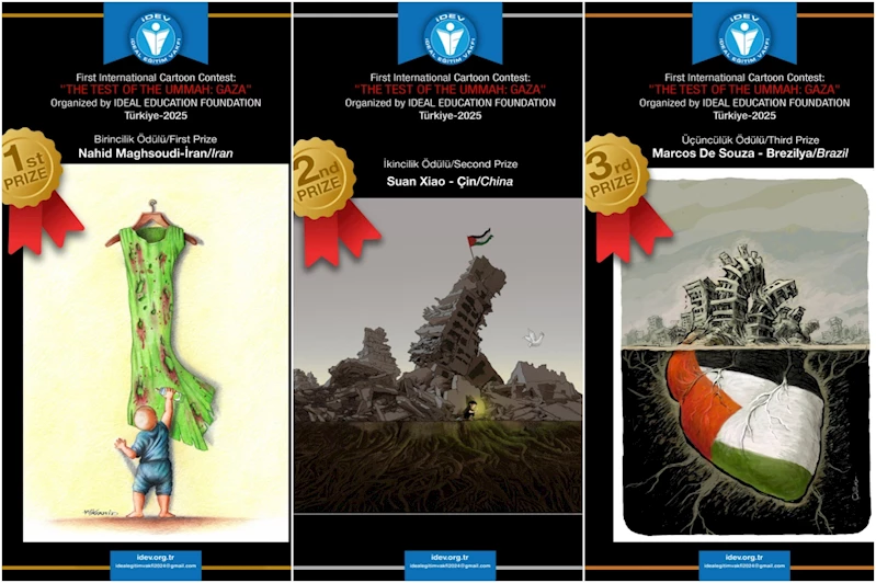 İdeal Eğitim Vakfı (İDEV)' nın düzenlediği "Ümmetin İmtihanı Gazze" temalı uluslararası karikatür yarışması, 49 ülkeden 210 karikatüristin katılımıyla gerçekleşti. Katılımın yoğun olduğu yarışmada karikatüristlerin paylaştığı 530 eserden İran'dan Nahid Maghsoudi 1'inci, Çin'den Suan Xiao 2'nci ve Brezilya'dan Marcos De Souza 3'üncü, Juri tarafından ödüle layık görülerek dereceye giren İran'dan Mahboube Pakdel'de 4'üncü oldu.