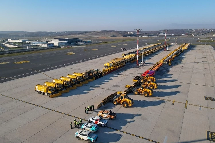 İSTANBUL (İGFA) - Dünyanın en önemli küresel aktarma merkezlerinden İGA İstanbul Havalimanı, kış hazırlıklarına ilişkin aldığı önlemleri aktardı. “Her türlü zorlu hava şartlarına hazırız” diyen İGA İstanbul Havalimanı Operasyonlardan Sorumlu Genel Müdür Yardımcısı Mehmet Büyükkaytan, karla mücadeleden sorumlu Hava Tarafı Operasyon Direktörlüğü personelinin her yıl 7 bin saatlik “zorlu iklim koşullarıyla mücadele” eğitimi aldığının altını çizerek, kar ve buzla mücadelede kullanılacak araçlara ilişkin detayları paylaştı. Büyükkaytan, Hava Tarafı Operasyon Direktörlüğünde görevli 404 personelin, bu yıl sayıları 179’a ulaşan araçla birlikte anında müdahaleye hazır olduğunu vurguladı, araç filosunun bakım ve onarımlarını düzenli olarak yapıldığının altını çizdi.