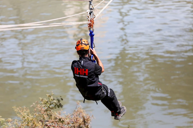 Tatbikatta, enkazda kentsel arama kurtarma, su üstünde arama kurtarma, doğada kayıp arama kurtarma ve dere yatağında havai hatla yaralı kurtarma çalışmaları yapıldı.