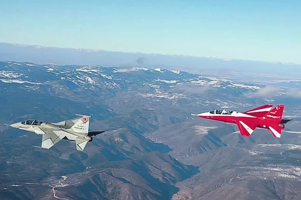 Türk Havacılık Uzay Sanayi, iki Hürjet'in aynı anda gökyüzünde olduğu an'a ilişkin görüntüleri paylaştı.
