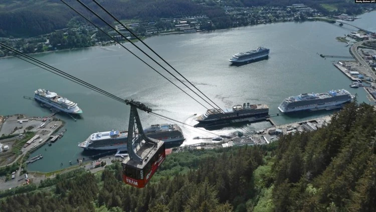 Başkent Juneau’daki limana yanaşan gemilerinden inerek bölgeyi keşfetmeye çalışıyorlar.