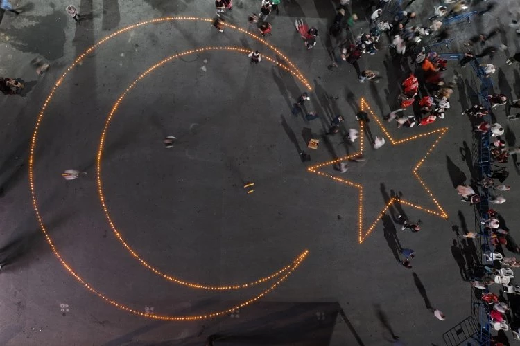 Etkinliğin sonunda ‘Cumhuriyetin Işıkları İlelebet Sönmeyecek’ mesajını taşıyan bir pankart açıldı ve ay yıldız önünde tüm katılımcılarla birlikte coşkuyla İstiklal Marşı okundu.