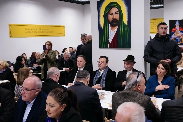 “Darda olanın, Hızır yoldaşı olsun, yardımcısı olsun” diyen Başkan İmamoğlu, “Bu değerli ibadethane, cemevimiz buraya çok yakıştı. Buradaki insanların mutluluğu huzuru sanki İstanbul’a iyi geliyor. Büyük bir yolculuğun tam ortasında, bugün burada Hızır lokmasında sevgili canlarımızın oruçlarını açmalarına, lokmalarına eşlik ediyoruz. Tutulan oruçlar, Hak katında kabul olsun. Ne mutlu sizlerle beraber dostça, can cana bir ömür yaşıyoruz. Allah, hepinizden razı olsun” şeklinde konuştu.