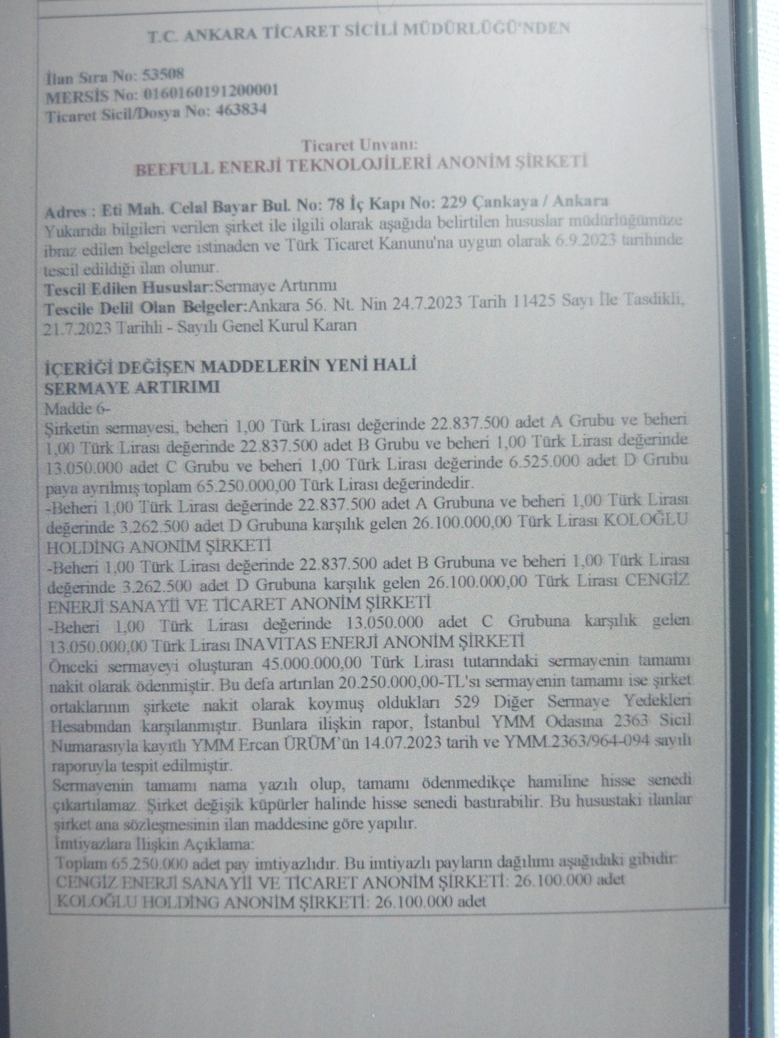 Kim yapmış bu işi diye baktığımda ise BEEFULL ENERJİ TEKNOLOJİLERİ AŞ karşıma çıktı. Şirketin ortakları ise tanıdık; Koloğlu Holding, Cengiz Enerji, İnavitas Enerji. Ticaret Sicil kayıtlarına göre Koloğlu yani kamuoyunda tanınan şirketi ile Kolin ve Cengiz, Beefull'da eşit hisse ile ortak. Şirketin istihdam sitelerine verdiği ilanlarda ise CK Enerji Yatırım adına alım yaptığı görülüyor.