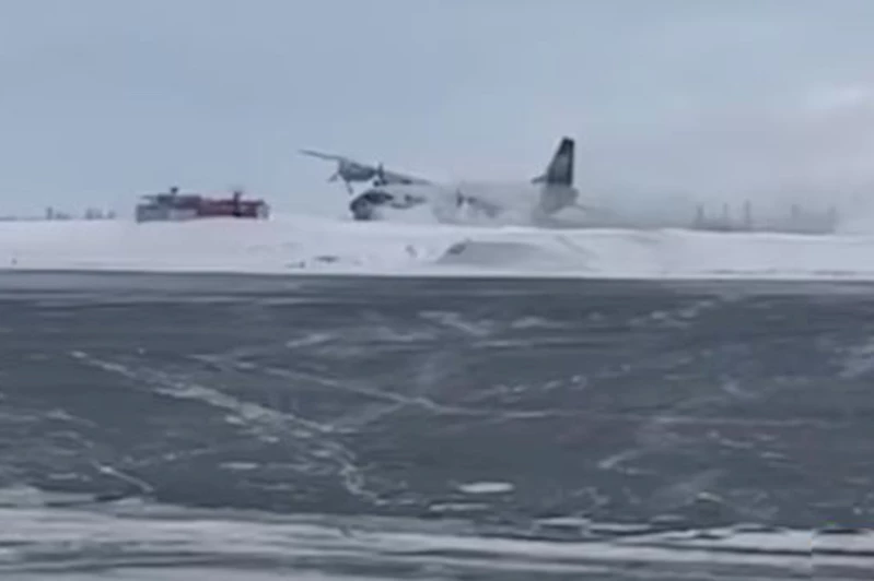 Rusya'nın Novy Urengoy kentinde, Antonov An-12 tipi kargo uçağının iniş sırasında iniş takımlarında arıza meydana geldi.