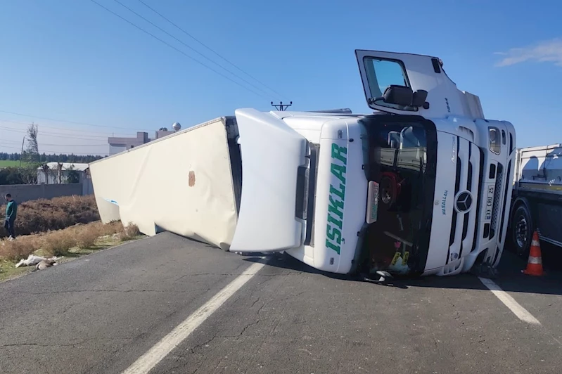 Edinilen bilgiye göre, 33 CRU 25 plakalı tırın şoförü M.Ş.A, yüklediği peyniri Irak’a götürmek üzere yola çıktı. Ancak seyir halindeyken direksiyon hakimiyetini kaybetmesi sonucu tır, devrildi.