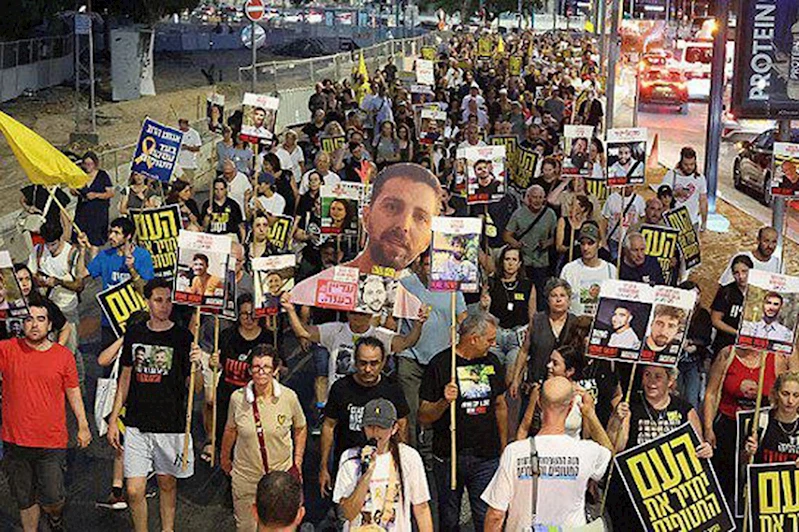 İşgal altındaki topraklarda, Gazze'ye yönelik savaşın durdurulması talebiyle geniş çaplı gösteriler düzenlendi. Tel Aviv'de gerçekleşen eylemlerde yüzlerce gösterici, saldırıların sona erdirilmesini ve esir değişim anlaşmasının yapılmasını istedi.