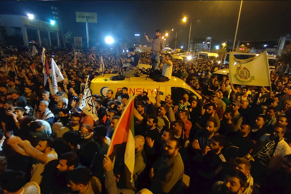 İşgal rejiminin Gazze'de bulunan hastanelere hava saldırısı düzenlemesinin ardından işgalci ABD’nin Adana konsolosluğu önünde toplanan yüzlerce kişi, yapılan katliamı protesto etti.