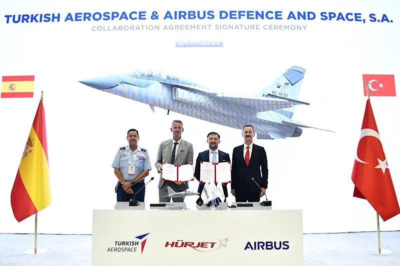 Savunma Sanayii Başkanlığı’nın sosyal medya hesabından yapılan açıklamada, "IDEF 2025 kapsamında, TUSAŞ standında Savunma Sanayii Başkanımız Prof. Dr. Haluk Görgün'ün katılımıyla, TUSAŞ ile AIRBUS İspanya arasında HÜRJET Projesi'ne dair iş birliği sözleşmesi imzalandı.