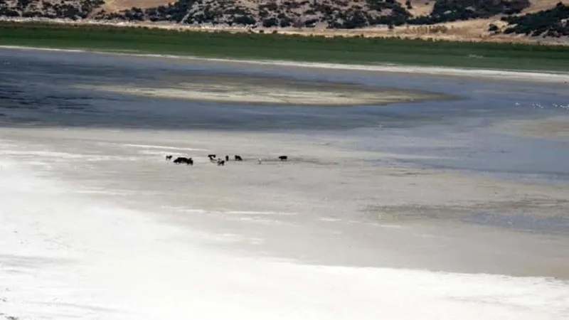 Isparta’nın simgesi, Türkiye’nin 4’üncü büyük gölü ve ülkenin 2’nci en büyük içme suyu kaynağı olan Eğirdir Gölü, kuraklık ve kontrolsüz su kullanımı nedeniyle ikiye ayrıldı. Gölün Hoyran Boğazı bölgesinde su tamamen çekildi, ortaya çıkan geniş kara parçası hayvanların otladığı bir mera haline geldi.