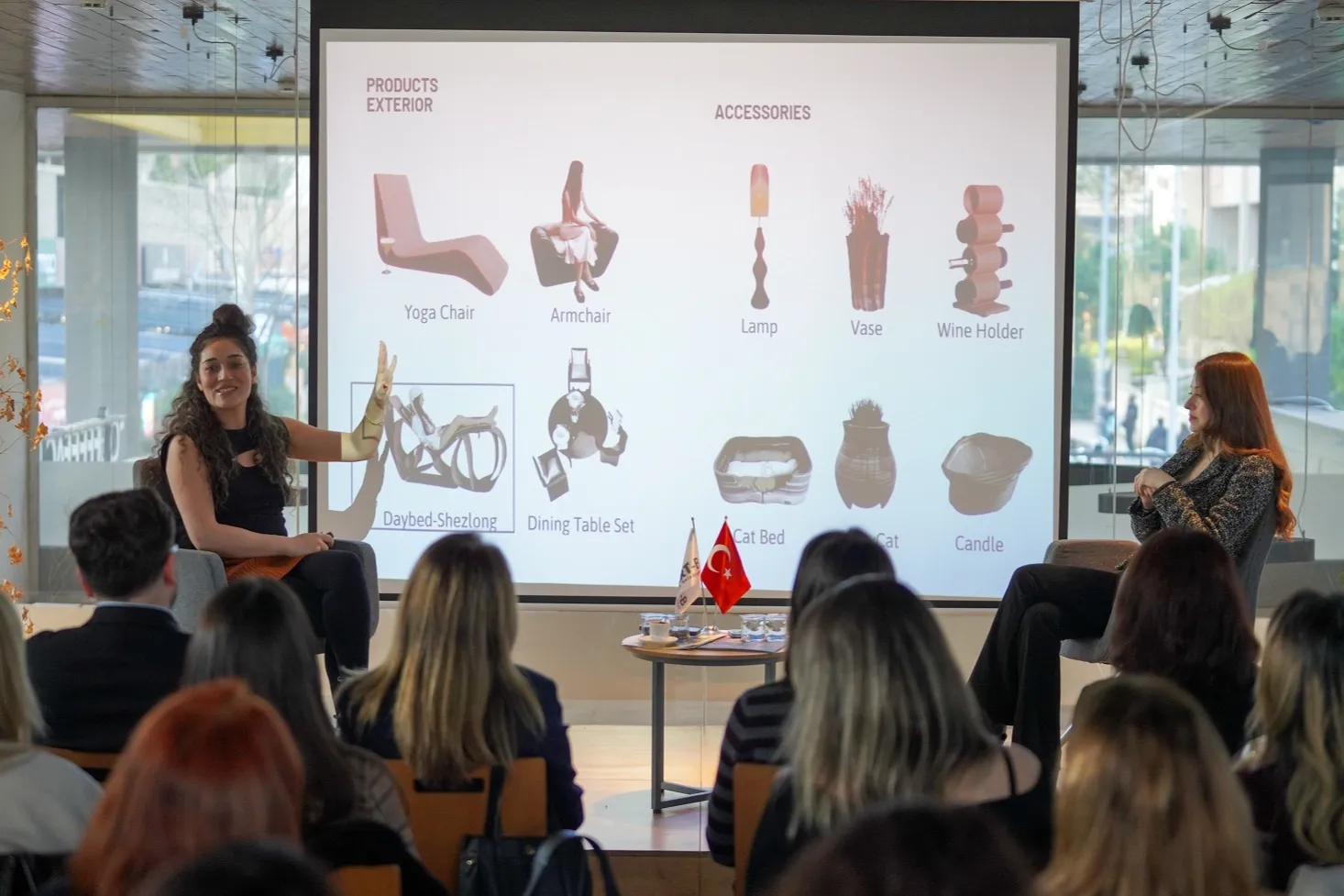 Dilek Bartın, programda geri dönüştürülmüş malzemelerden özel kompozit üretim sürecini anlatarak, bu malzemeleri yeni bir geleceğin parçası haline getiren çalışmalarını paylaştı. Betül Karaca ise 3D yazıcı teknolojisiyle tasarımı ürüne ve mekâna dönüştürdüğü büyük ölçekli mobilya üretim örneklerini katılımcılara aktardı.
