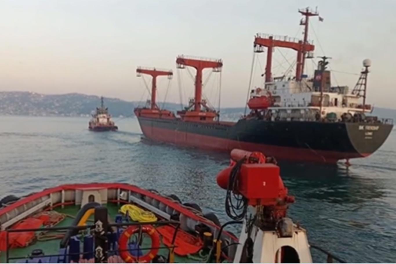 İstanbul Boğazı'nda makine arızası yapan kargo gemisi, Büyükdere'ye demirletildi.