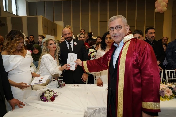 İstanbul'da Üsküdar Belediyesi tarafından Selami Ali Sosyal Tesisinde düzenlenen organizasyonda 17 roman çift toplu bir şekilde dünya evine girdi.