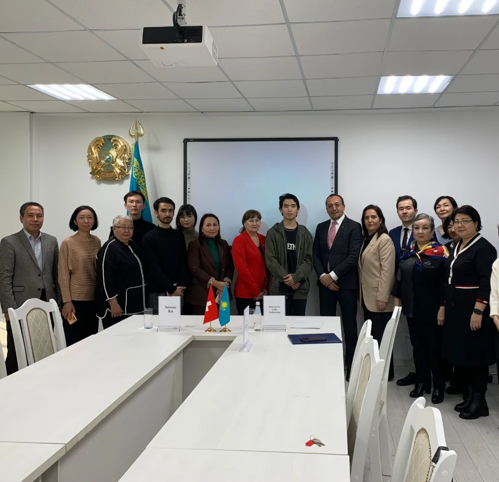 İsviçre'nin Kazakistan ve Tacikistan'daki Olağanüstü ve Tam Yetkili Büyükelçisi Salman Bal El-Farabi Kazak Milli Üniversitesi Uluslararası İlişkiler Fakültesi'nde bir büyükelçilik saati düzenledi.