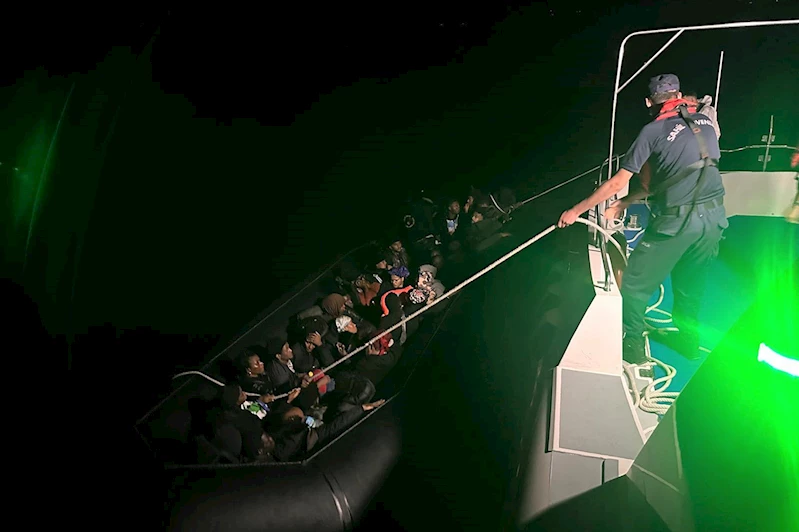 Sahil Güvenlik Komutanlığı ekipleri, Çeşme açıklarında durdurdukları lastik botta, 17'si çocuk 41 düzensiz göçmeni yakaladı. Göçmenler, işlemlerinin ardından İl Göç İdaresi Müdürlüğüne gönderildi. (İLKHA)
