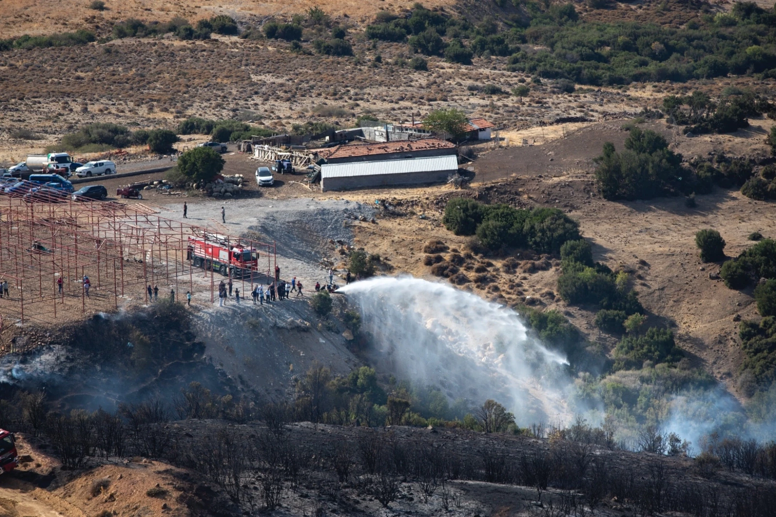 Ekipler bölgede soğutma çalışmalarını sürdürüyor.