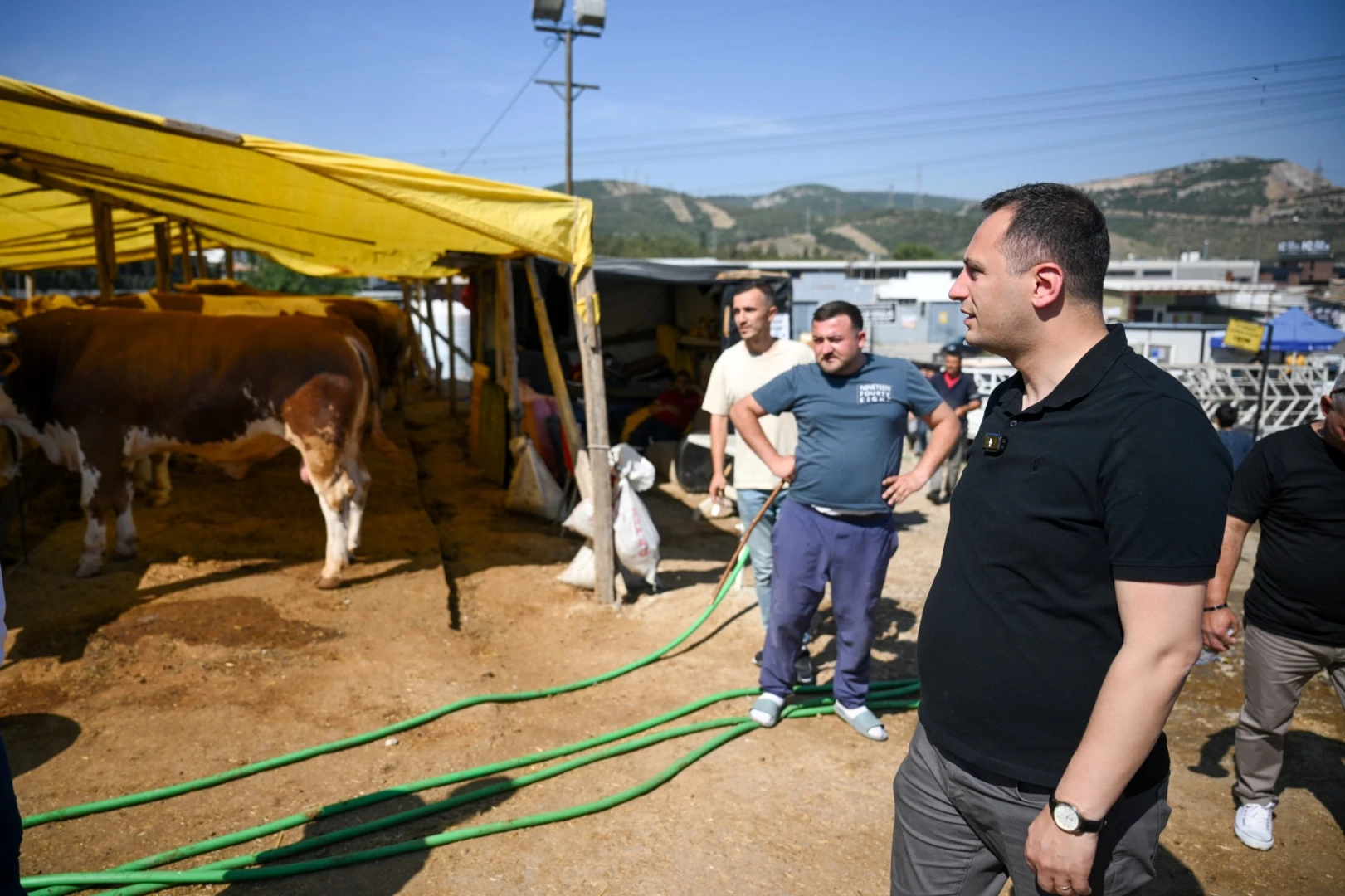 Bornova Belediye Başkanı Ömer Eşki, bayram öncesi Arefe Günü Işıkkent’teki kurban satış alanını ziyaret ederek hem esnafla hem de vatandaşlarla bir araya geldi.