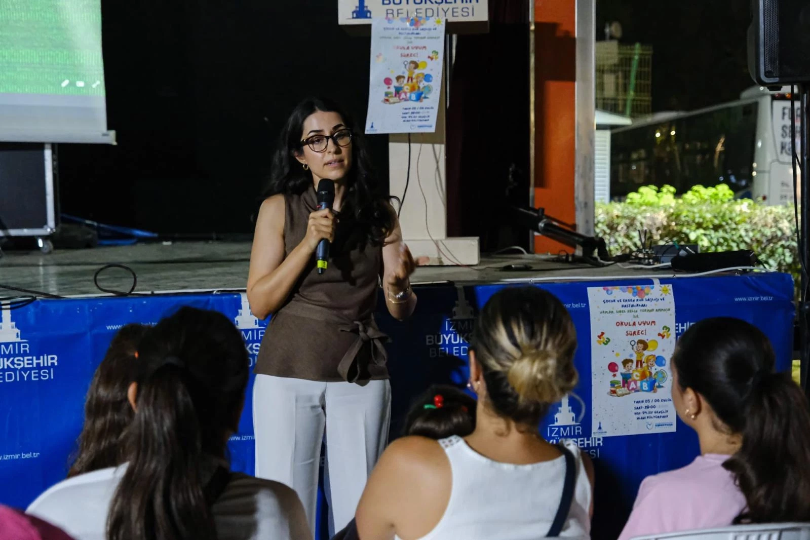 Fuarda, her gün 17.30 – 20.00 saatleri arasında okul öncesi ve yeni okula başlayan çocuklara yönelik eğitici ve eğlenceli etkinliklere ev sahipliği yapan sahnede, bu kez anne ve babalar için eğitici bir söyleşi vardı. İzmir Büyükşehir Belediyesi Eşrefpaşa Hastanesi Çocuk ve Ergen Ruh Sağlığı ve Hastalıkları Uzmanı Dr. Sibel Helin Tokmak Ammash, “Okula Uyum Süreci” başlıklı söyleşide, çocukların okula uyum sürecinde ailelerin tutumlarının kritik rol oynadığını vurguladı.