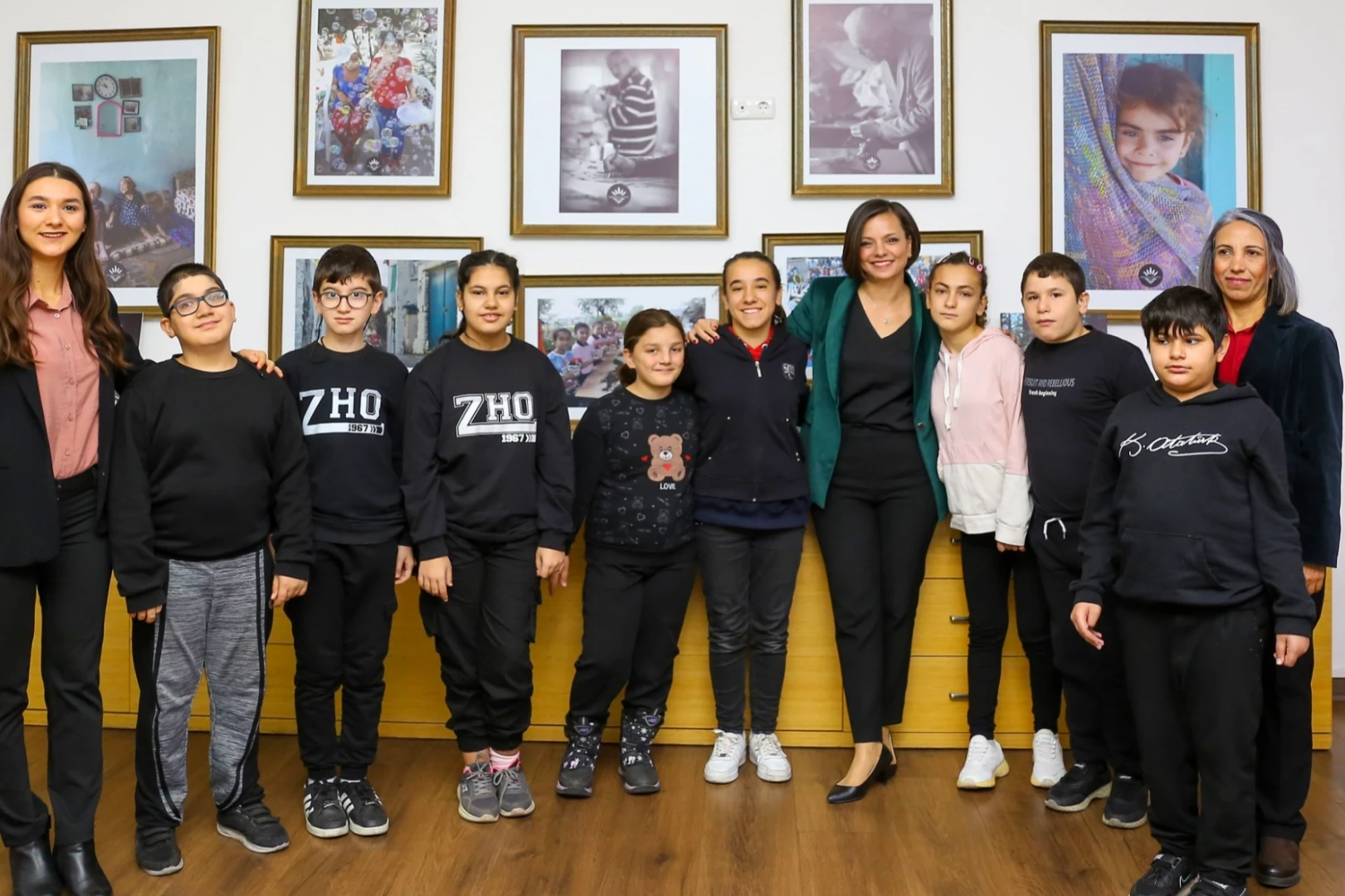 3 Aralık Dünya Engelliler Günü kapsamında, Karabağlar'daki Zeyni Hanım Ortaokulu'nda eğitim gören özel gereksinimli öğrenciler, öğretmenleriyle birlikte Karabağlar Belediye Başkanı Helil Kınay'ı makamında ziyaret etti.