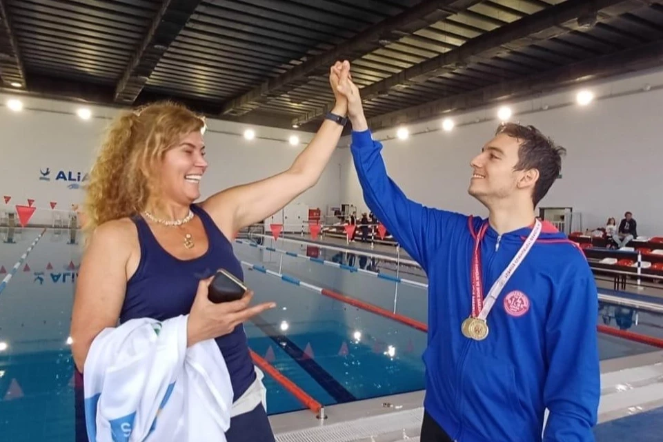 İZMİR (İGFA) - İzmir Narlıdere Belediyespor sporcuları Deniz Can Ertan ve Sarp Börekçi, Türkiye Özel Sporcular Spor Federasyonu’nun Aliağa’da düzenlediği İzmir Yüzme Şampiyonası’ndan 5 altın ve 3 gümüş madalya ile dönerek büyük bir başarıya imza attı.